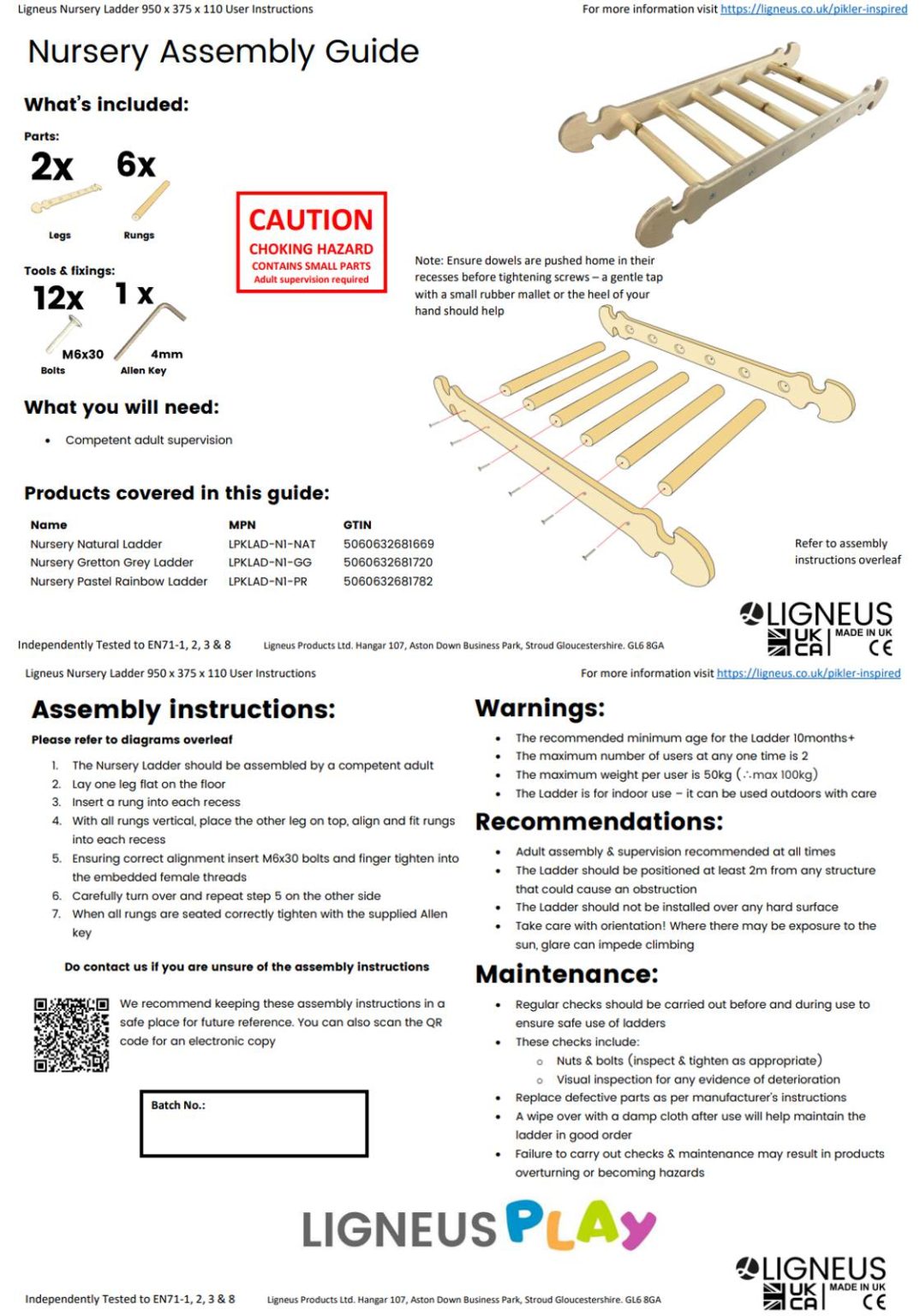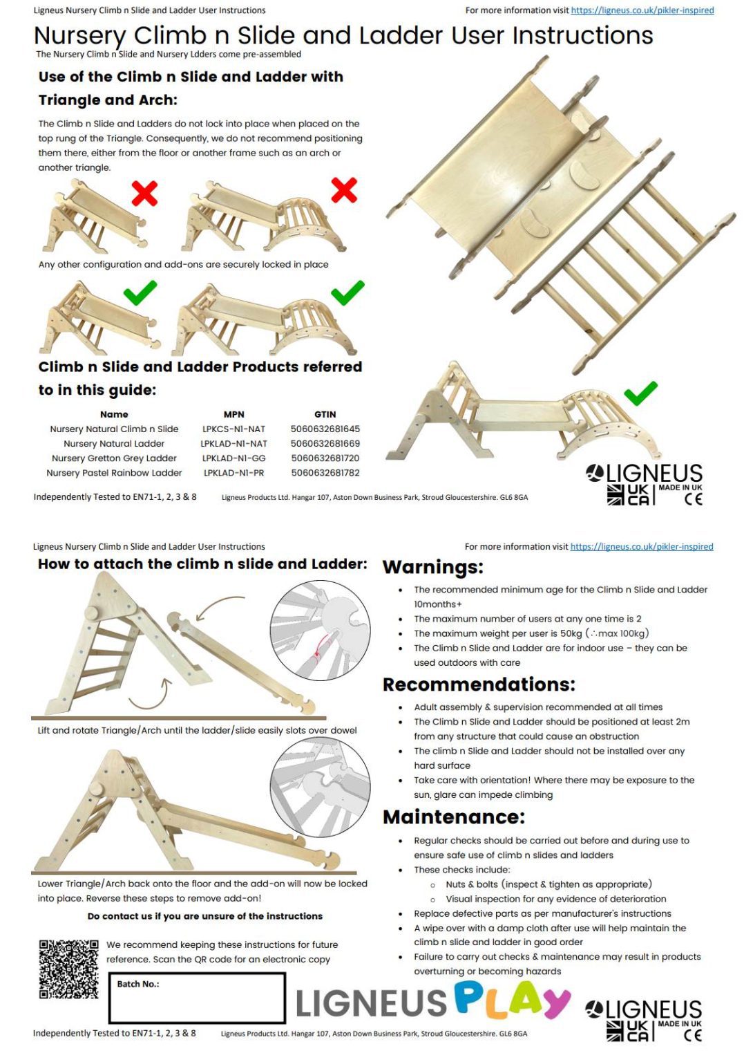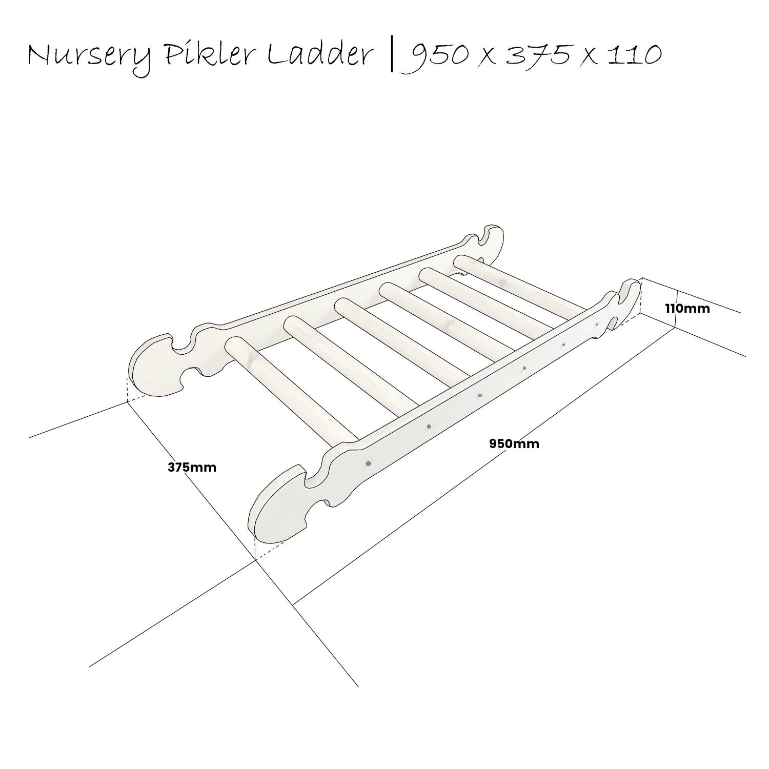 This Pikler Inspired Climbing Ladder gives endless possibilities for developing a child's motor skills. Can be linked to the nursery size arch or triangle to climb or act as a bridge.